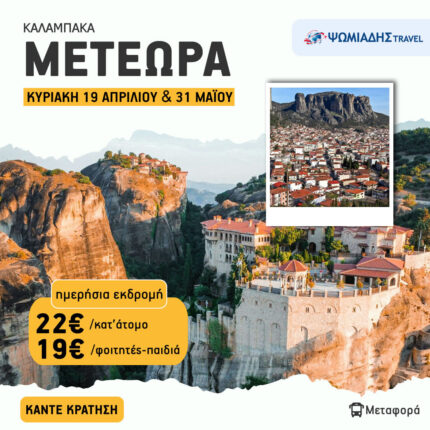Ημερήσια εκδρομή Μετέωρα – Καλαμπάκα