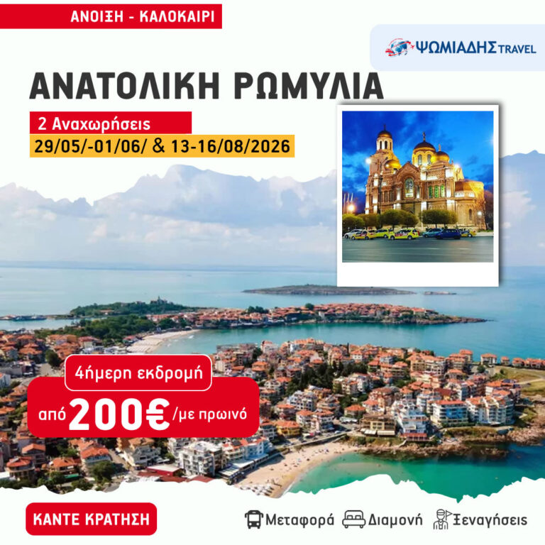 Αναχώρηση από το γραφείο μας στις 07:00. Με καθ’ οδόν στάσεις στα Γρεβενά και Ιωάννινα, άφιξη στα ελληνοαλβανικά σύνορα Κακαβιάς. Μετά τις απαραίτητες συνοριακές διατυπώσεις είσοδος στην Αλβανία. Αναχώρηση για το Αργυρόκαστρο, την μεγαλύτερη πόλη στην νότια Αλβανία, κτισμένη εξ ολοκλήρου με την παραδοσιακή Ηπειρωτική Αρχιτεκτονική. Τα χαρακτηριστικά σπίτια μοιάζουν με πύργους όπου έχουν χτιστεί το ένα πάνω από το άλλο. Το θρυλικό κάστρο στέκεται πάνω από την πόλη σαν μπαλκόνι και αφήνει τους επισκέπτες να θαυμάσουν την πανέμορφη θέα. Χρόνος ελεύθερος για καφέ. Συνεχίζουμε για Δερβιτσάνη. Αναχώρηση για τους Αγίους Σαράντα, μια όμορφη, παραθαλάσσια πόλη. Τακτοποίηση στο ξενοδοχείο. Χρόνος ελεύθερος για μία πρώτη βόλτα γνωριμίας με την πόλη. Δείπνο με μουσική. Διανυκτέρευση.