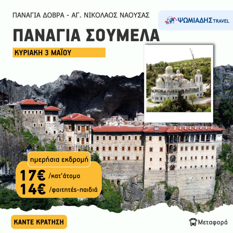 H αναχώρηση γίνεται από την πόλη της Θεσσαλονίκης. Το λεωφορείο ξεκινάει από τις εγκαταστάσεις μας (Θερμαϊκού 19, Νικόπολη) και από τα γραφεία μας Τσιμισκή 17 στο κέντρο της πόλης.